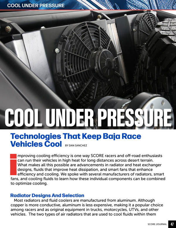 Improving cooling efficiency is one way SCORE racers and off-road enthusiasts can run their vehicles in high heat for long distances across desert terrain. Read More
