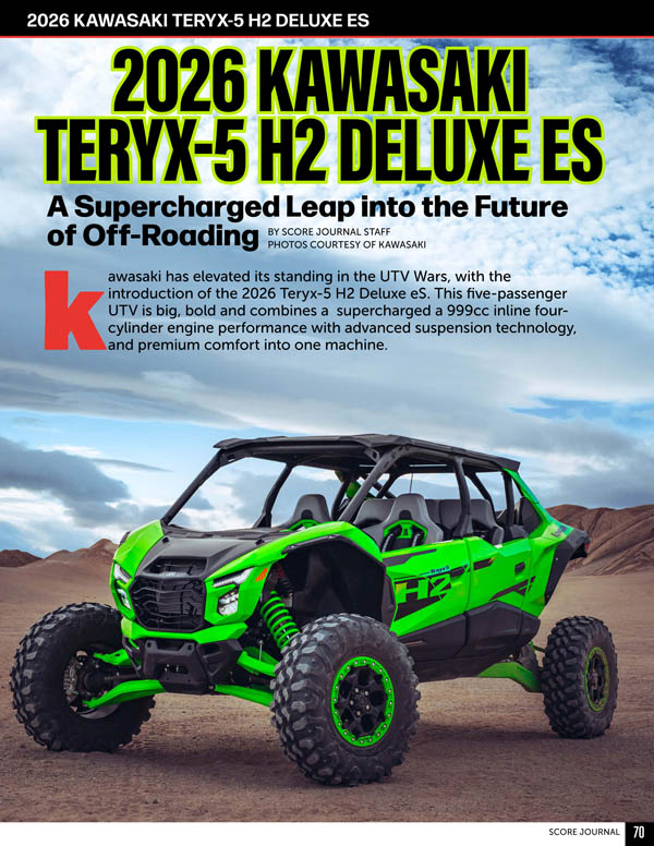 Kawasaki has elevated its standing in the UTV Wars, with the introduction of the 2026 Teryx-5 H2 Deluxe eS. This five-passenger UTV is big, bold and combines a supercharged a 999cc inline fourcylinder engine performance with advanced suspension technology, and premium comfort into one machine. Read More